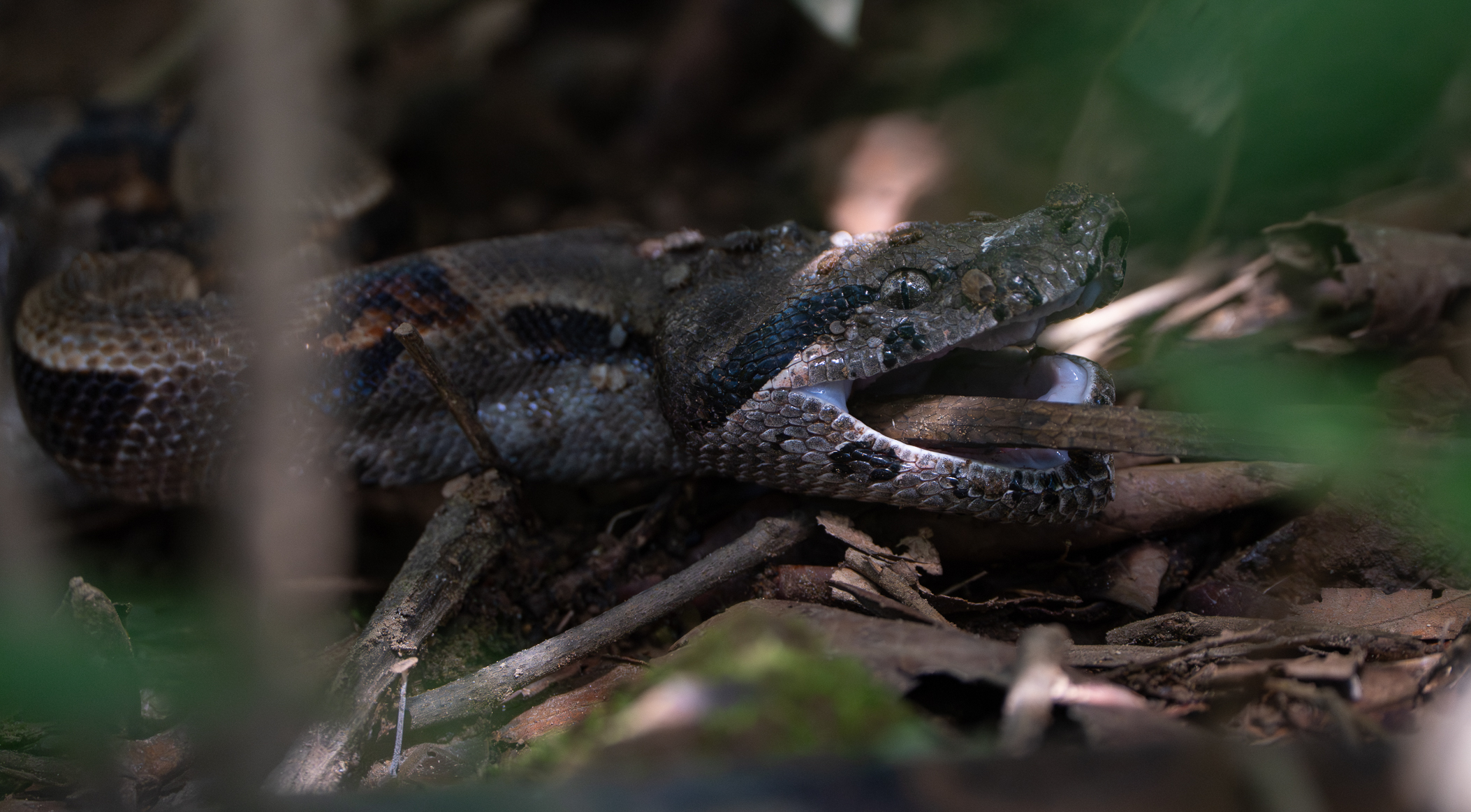Boa snake depredates a basilisk