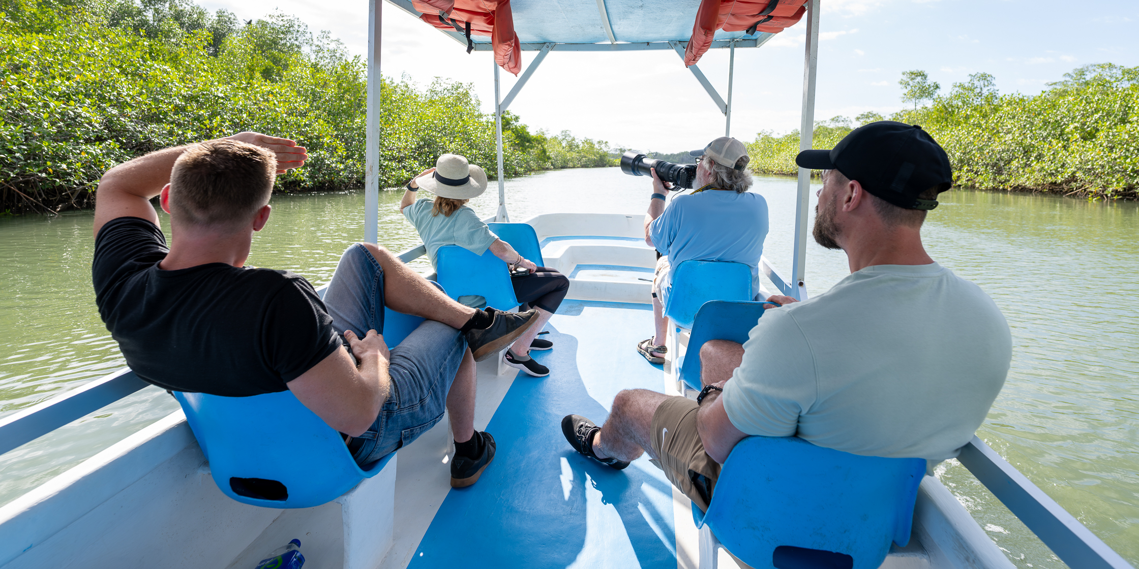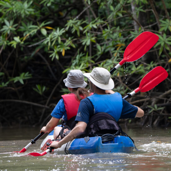 The hidden canals of Damas mangroves This is a unique opportunity to explore one of the largest protected mangrove areas in the Central Pacific, where the flat, calm waters offer a tranquil setting for wildlife viewing. The 15-passenger boat is comfortable and safe, making your two-hour journey smooth and relaxing. Observe and photograph monkeys, birds, anteaters, crocodiles and more all while our guide provides insightful interpretation of this amazing biological community. Departure times are scheduled to coincide with high tide for the best experience. Enjoy complimentary fresh local fruits and refreshments.